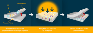 The sublimation process is a printing technique that involves converting solid ink directly into a gas, bypassing the liquid phase, and infusing it into a substrate, typically a polyester-based material or coated hard surface. This process is widely used for creating vibrant, durable, and high-resolution images on products such as clothing, mugs, phone cases, and more. The sublimation process results in a long-lasting, high-quality print that is resistant to fading, peeling, or cracking, as the ink becomes a part of the substrate's structure.